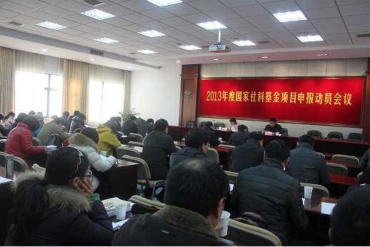为进一步提高我校国家社科基金项目的申报质量,提高立项层次和数量,推进我校人文社科研究工作迈上新台阶,1月10日下午,学校召开2013年度国家社科基金项目申报动员会议。陈耀副校长主持会议并讲话。