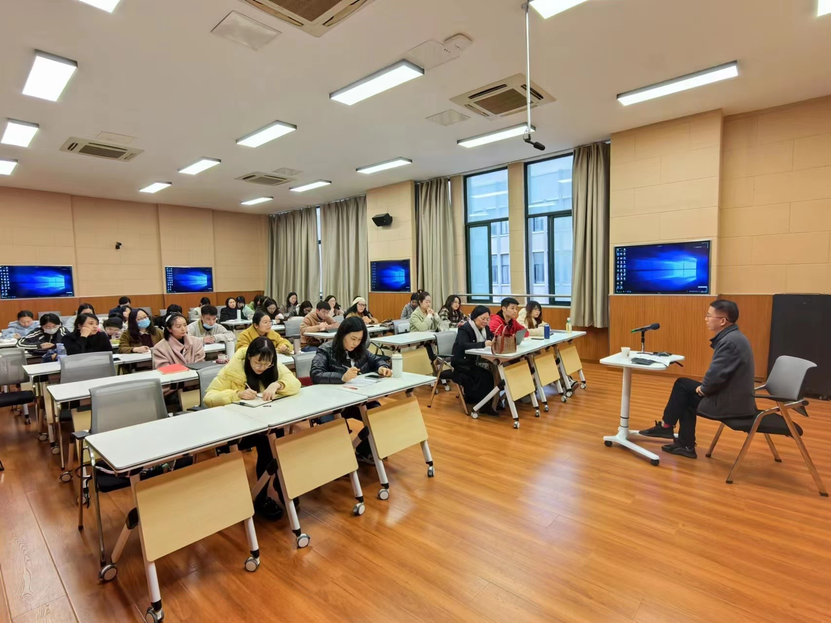 周教授对其创建的“译者行为批评”理论作了详细的介绍,他以问题意识和研究方法的引领为主,以师生们在研的部分选题为例,剖析了在这一理论视域进行可持续研究的潜质,团队成员就相关问题进行深入交流,充分表示了对开展相关研究的信心。